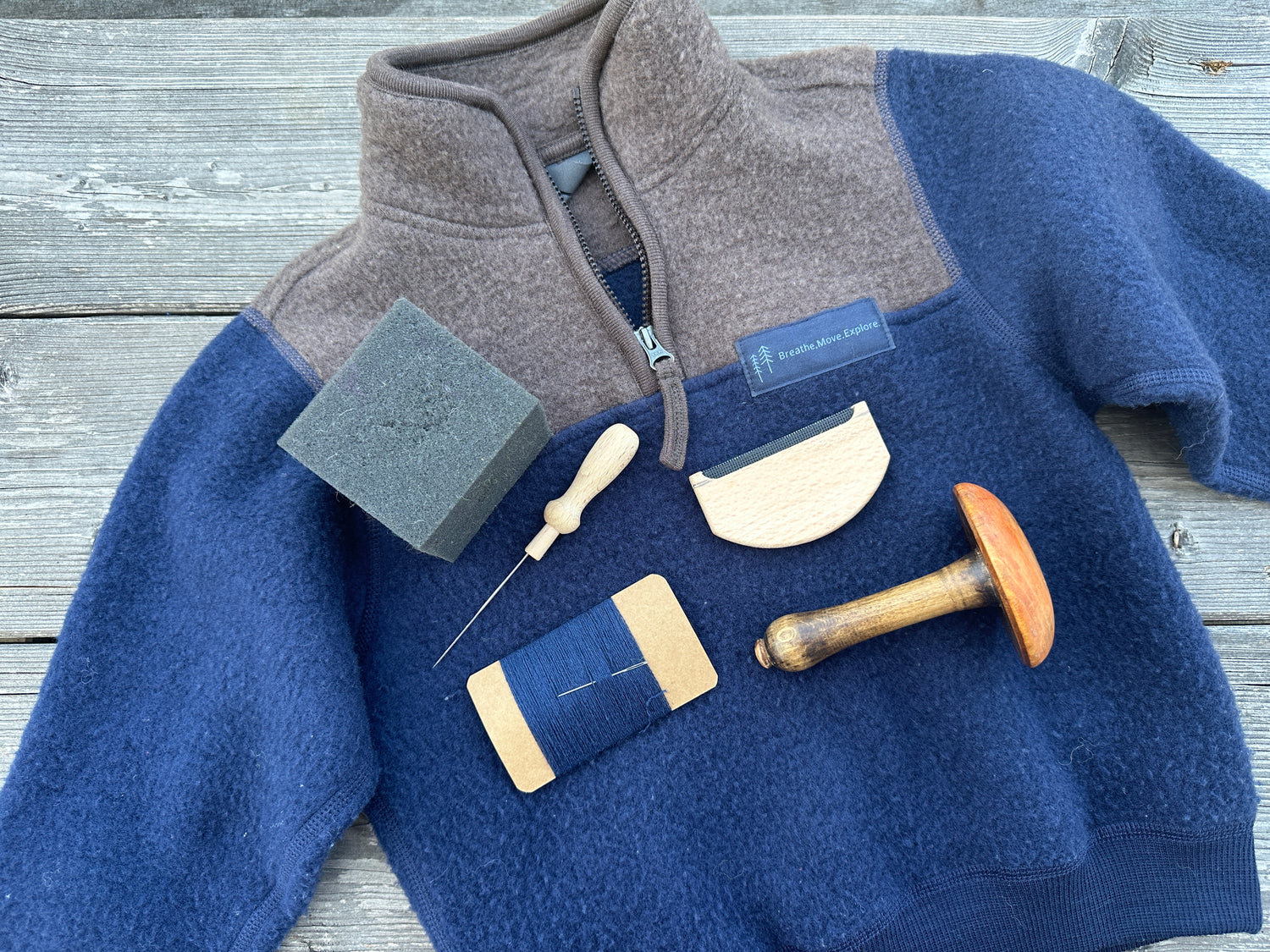 Löcher in Wollfleece unsichtbar reparieren? Kein Problem! Mit Webstopfen und Nadelfilzen verschwinden auch größere Schäden wie von Zauberhand (nicht geeignet für durchgescheuerte Ellenbogen- und Kniepartien).